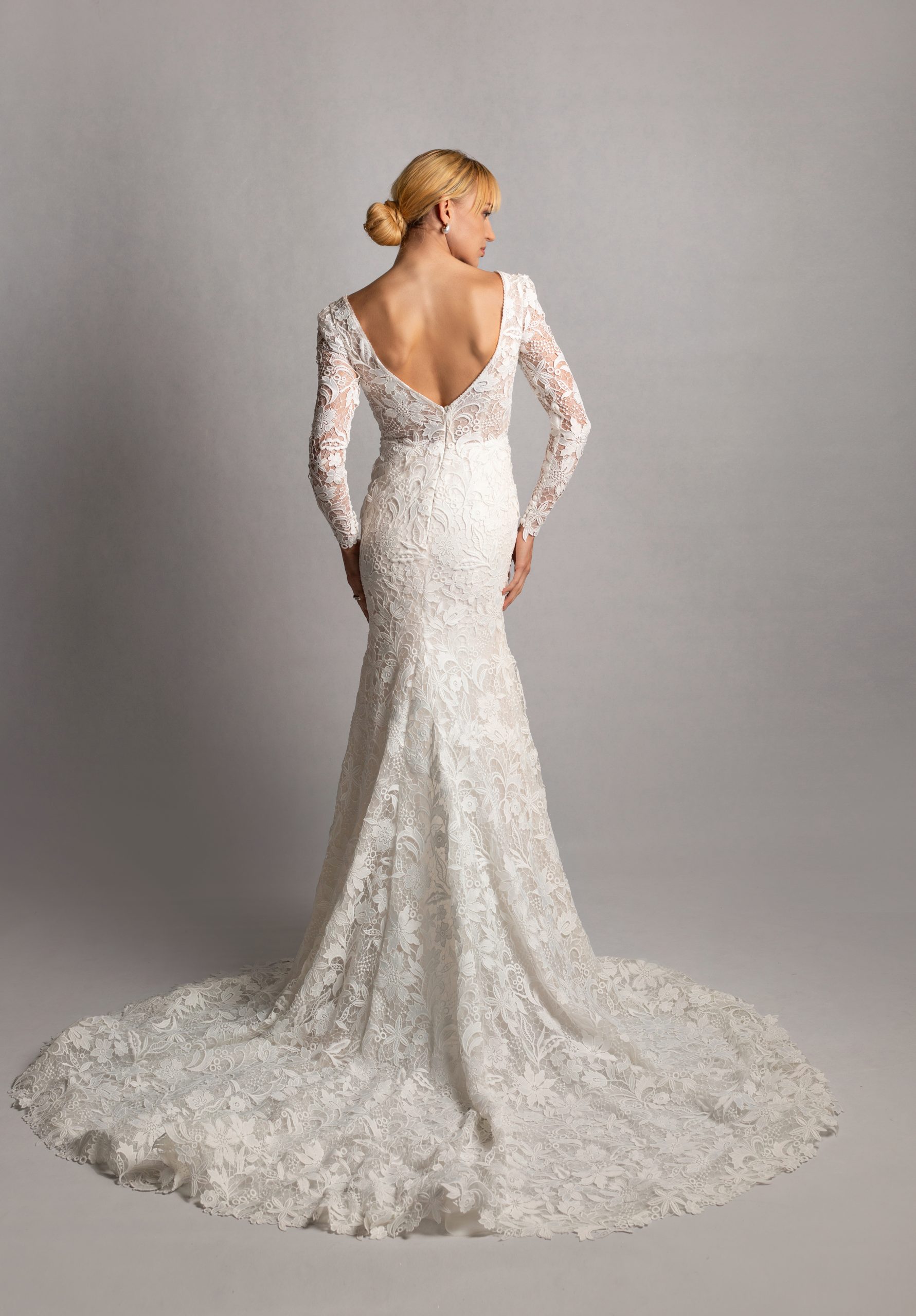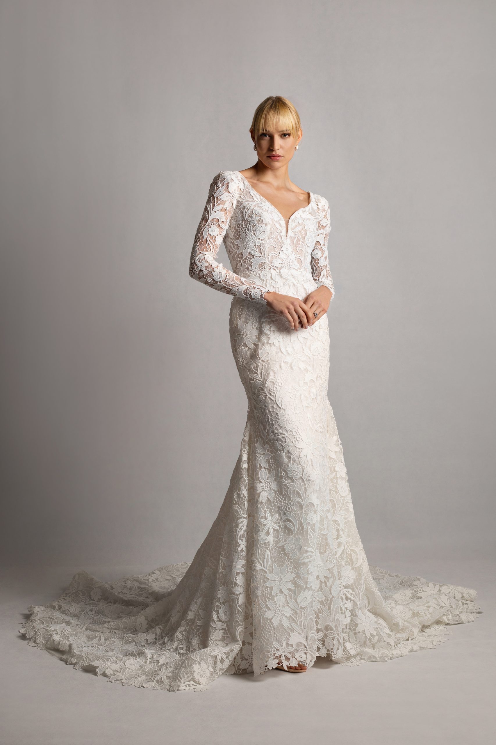 Long sleeves and Guipure lace gown