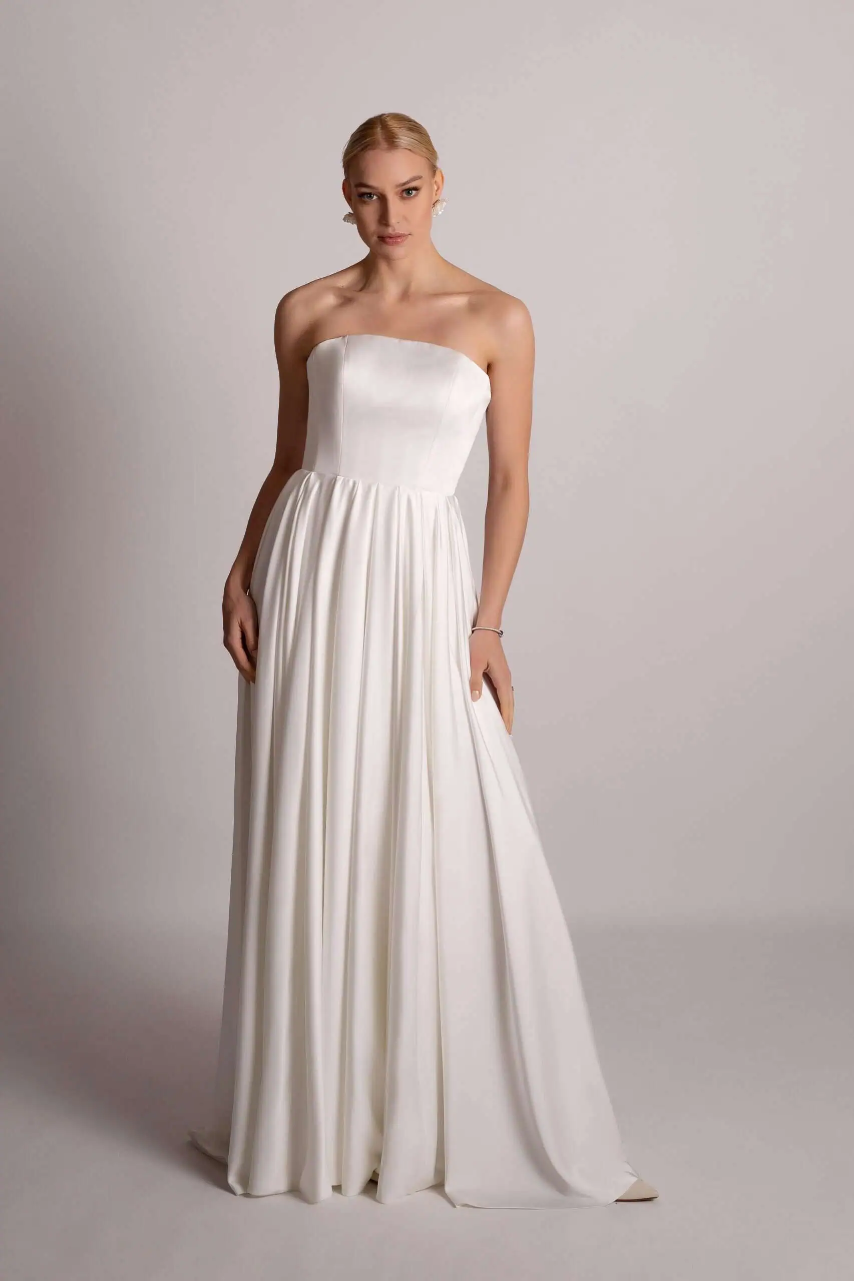 - Fully boned pleated bodice